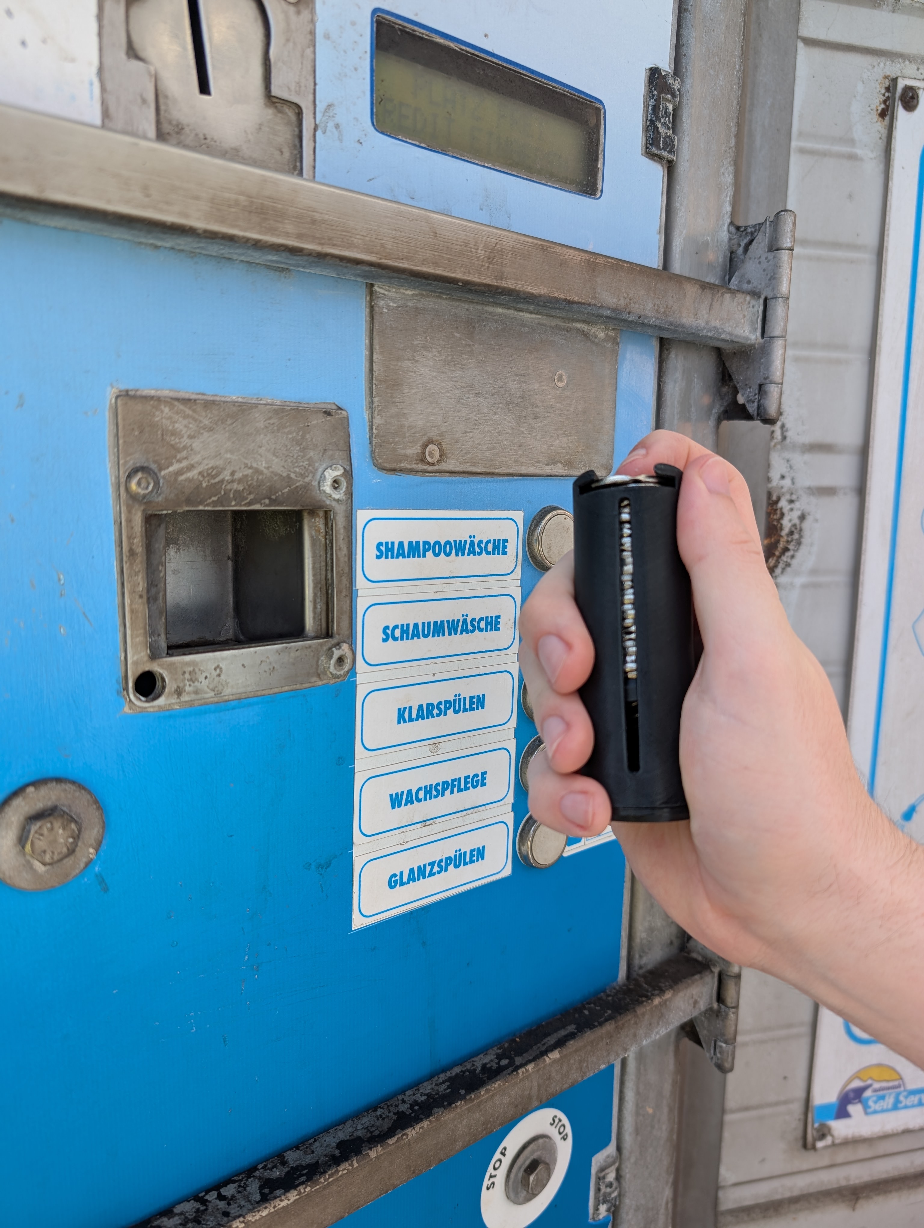 Schluss mit dem Chaos durch herumliegende Waschmünzen im Auto! Kennen Sie das? Die Münzen für die Waschanlage kullern lose im Becherhalter, im Aschenbecher oder im Handschuhfach herum? Damit ist jetzt Schluss!
